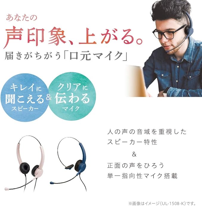 あなたの声印象、上がる。届きがちがう口元マイク。周囲の雑音を拾いにくい単一指向性マイクを搭載。
