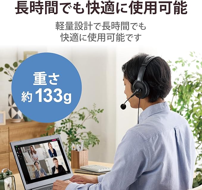 ■アラウンドイヤータイプの中でも軽量な約133gにより、長時間でも快適に使用可能です。