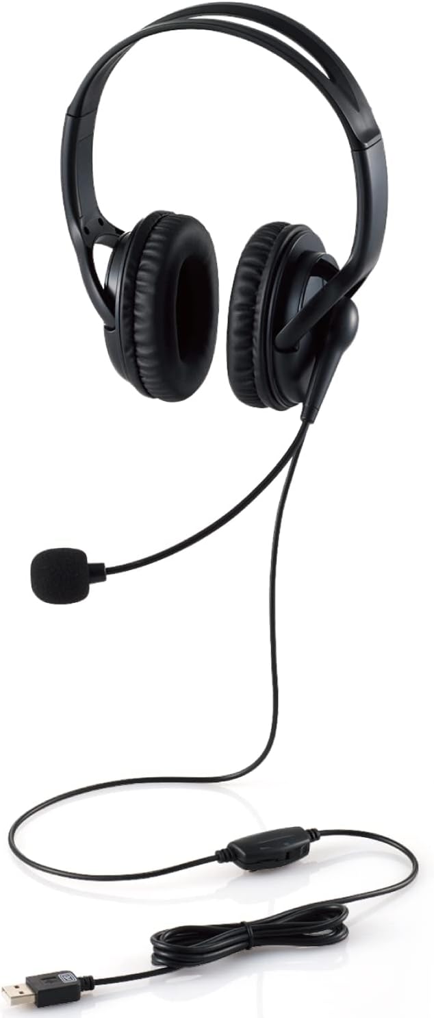 エレコム ヘッドセット 有線 オーバーヘッド マイク付き USB 接続 [ ミュート機能 ボリューム調整 フレキシブルアーム ] 軽量 大型 両耳 1.8m ブラック HS-HP02SUBK