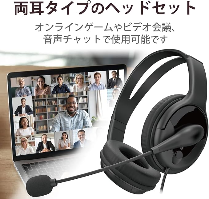 ■オンラインゲーム、Web会議・ビデオ通話、音声チャットでの使用に適した両耳大型オーバーヘッドタイプのヘッドセットです。