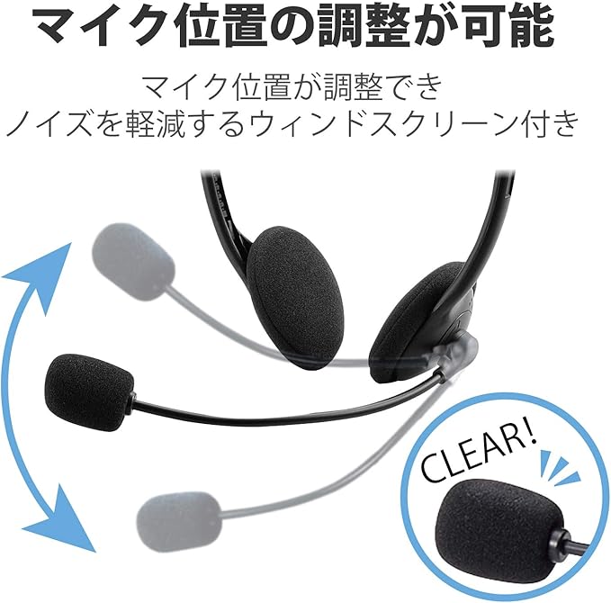 エレコム ヘッドセット マイク 4極 両耳 オーバーヘッド 1.8m HS-HP22TBK