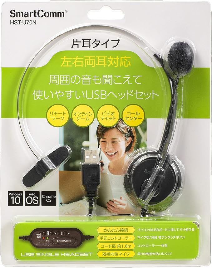 【 特 長 】● 周囲の音も聞こえて使いやすいUSBヘッドセット● 左右両耳対応● リモートワーク・オンラインゲーム・ビデオチャット・コールセンターに● かんたん接続でパソコンのUSBポートに挿してすぐ使える● 手元コントローラーでマイク切/消音、各ワンタッチボタンの操作が出来ます● 周りの雑音を拾いにくい双指向性マイク