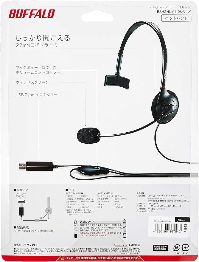 バッファロー BUFFALO 片耳ヘッドバンド式ヘッドセット USB接続