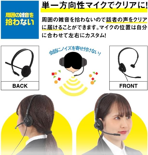 【コールセンターに最適!】ノイズキャンセリング機能付きで、周囲の雑音やキーボード音を遮り、話者の声のみ相手に伝えることができます。マイクの位置は適切な位置に調節可能です。