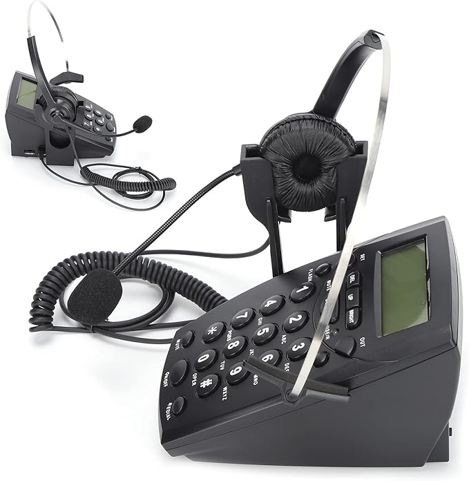 Crophone ヘッドセットコールセンター有線電話ホーム/オフィス電話ヘッドセット付き有線電話電話、HT800 コールセンター有線電話無指向性マイクヘッドセット付き