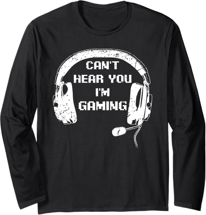 Funny Gaming Gifts for men and boys love to play video games. Funny Gamer Can't Hear You I'm Gaming Teens Boys Girls Gift T-Shirt. This funny gaming apparel is fronted by an often-used statement in gamers life which says "Can't Hear You I'm Gaming".