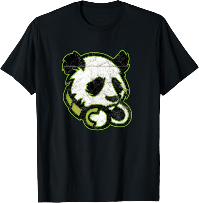 Cool graphics of Panda with head set perfect for gamers. Vintage Distressed look for video game addicts.