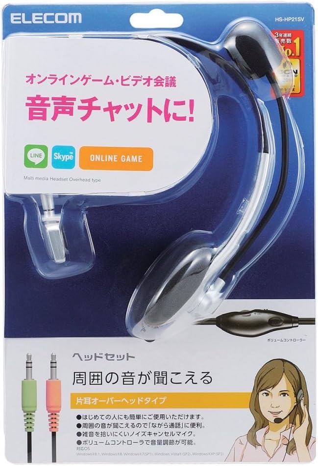 エレコム ヘッドセット マイク 片耳オーバーヘッド 1.8m HS-HP21SV