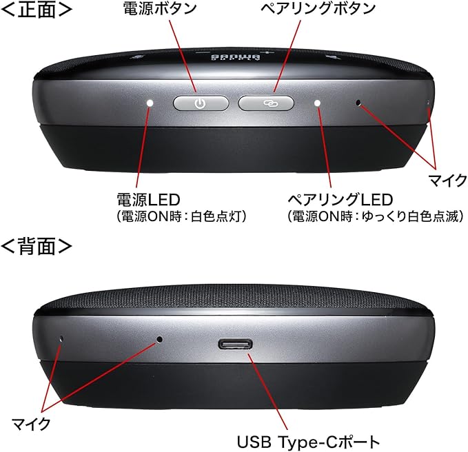 2.4GHzで接続して使えるワイヤレスの会議スピーカーフォンです。