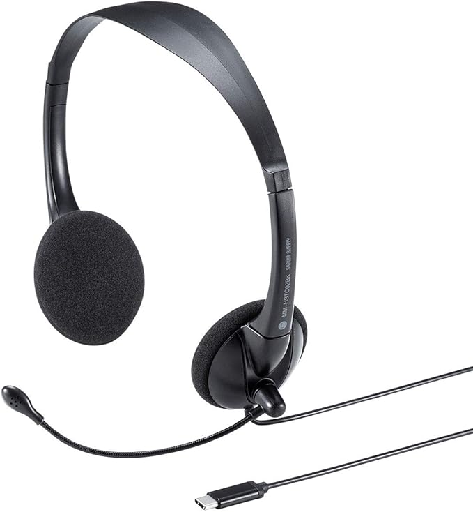 サンワサプライ 有線ヘッドセット USB Type-C 接続 単一指向性マイク 軽量 Skype Zoom Teams対応 ブラック MM-HSTC02BK