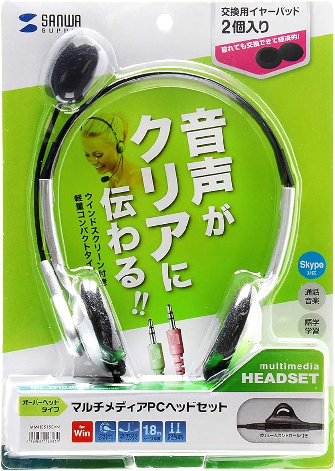 サンワサプライ(Sanwa Supply) マルチメディアPCヘッドセット 3.5mmステレオミニプラグ Skype対応 MM-HS515SVN