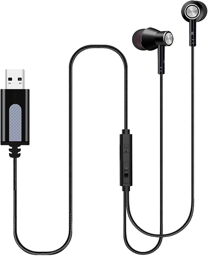 ヘッドセット USB マイク付きイヤホン 有線 音量調節 カナル型 軽量 テレワーク ZOOM用 web会議 オンライン授業 遠隔仕事 ゲーム用 PC 対応 (約2.5m 黒)