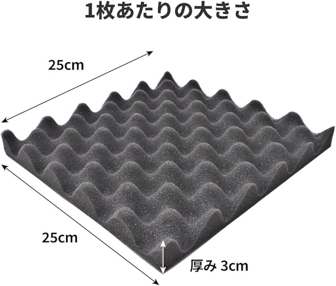 ✅【 波型構造で効率よく吸音 】表面を波型構造にする事で吸音表面積を多く確保。音のランダム入射に効果を発揮します。 デッドニング 用に車内に 、 ホームシアター 、 ピアノ室 、 音楽ルーム 等の壁面に貼り付けることで効率よく吸音します。