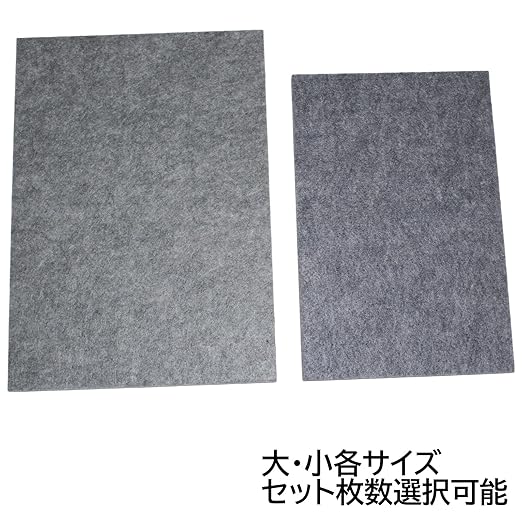 この吸音硬質フェルトボードはサイズは大350 250 12(mm) または小300 200 12(mm) のポリエステルフェルトで、弾力性もあり特に厚さ12mmと極厚で、菱目打ちやカービング等の防音・防振対策に適しています。