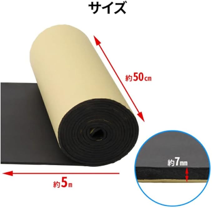 iimono117 デッドニング 吸音材 車 厚み7mm 幅50cm 長さ5m シールタイプ 防音 吸音 防音シート 吸音シート 分厚い 音響 スピーカー ドア 周辺 ハサミでカット可能 取付簡単 DIY (1個)