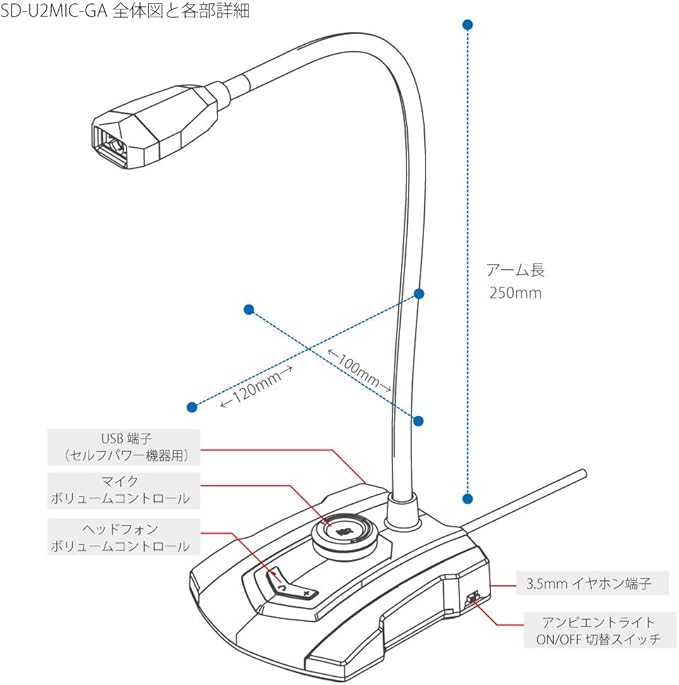AREA eスポーツチーム SchwarzerLand監修 USB接続ゲーミングマイク 全指向性マイク 96KHz/24bit対応 フレキシブルアーム アンビエントライト搭載 3.5mmイヤホン出力USB端子 Windows10/8.1/7 MacOS 10.7.3~ PS4対応 GAMING MIC SD-U2MIC-GA