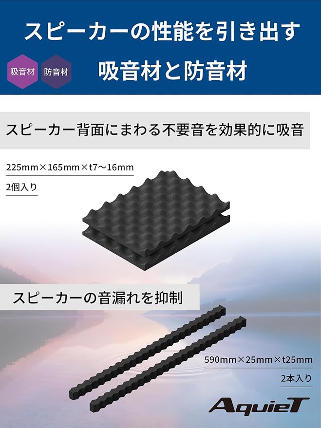サウンドプルーフィングウェーブ(スピーカー用):スピーカーの外周にぴったりフィットする波型スポンジを採用。