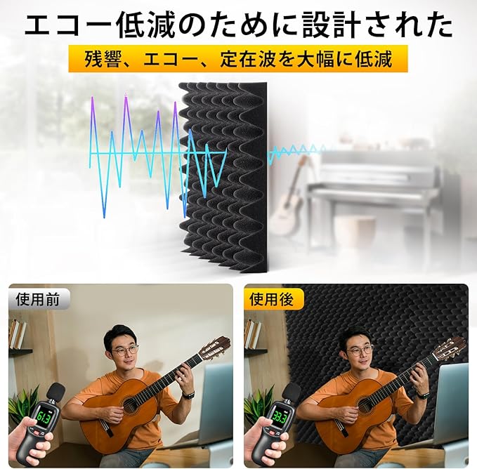 スタジオクオリティのフォーム:高密度ポリウレタン音響フォームで作られたこれらの30 x 30 x 5cmのくさび形パネルは、ボーカル、楽器などのスタジオクオリティの音吸収を提供します。