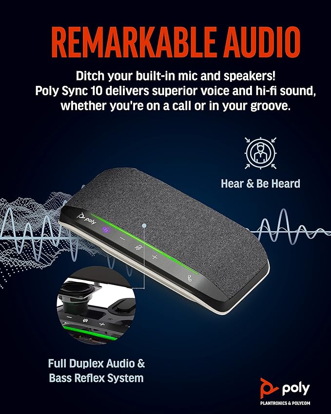 優れた操作性を誇るPoly Sync 10 USB スピーカーフォンは、ビジネスユースにもパーソナルユースにも最適な、高品質なサウンドを提供します。