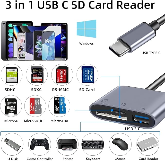 USB C SDカードリーダー3 in 1 タイプC USB 3.0カメラアダプタ 双方向高速データ転送 SD/TFメモリーカードUSB OTG変換アダプタ 対応MicroSD/SDHC/SDXC/Uディスク/マウスの/キーボード/写真 ビデオ 双方向読み書き対応 i-Phone 16/ Samsung Galaxy S20 Windows/PCアプリ不要