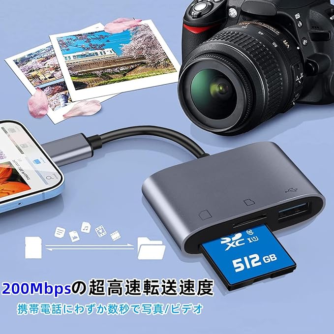 【USB3.0ポート高速データ転送】USB 3.0は従来のUSB2.0より約10倍速く、最大120-200Mbpsの高速データ転送を楽しめます。双向転送、大容量のHD映画や仕事ファイル、記念写真等をわずか数秒で転送完了できます。USB3.0ポートはカメラ、ワイヤレスキーボード、マウスやUSBメモリに適用です。カードを2枚挿した場合、同時に読み書きできます。USB-A3.0(500mA) ポートも同時に使用できます。面倒な抜き挿しが不要で、作業効率を向上させます。いつでもどこでもご家族や友達に共有できます。対応ファイル形式:[写真・画像]JPEG/RAW/HEIF/HEVC [映像・ビデオ]SD / HD (H.264 / MPEG-4)