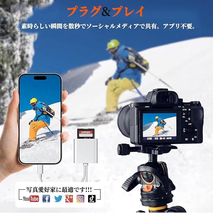 ✅ 【2025年強化版・デュアルポート対応】 SDカード(SD/SDHC/SDXC)とマイクロSDカード(Micro SD/Micro SDHC/Micro SDXC)の2つのポートを搭載。付属のPhone & Type-Cケーブルを使い、スマートフォン・タブレット・PCに直接接続可能。デジタルカメラの写真や動画を、手軽に各種デバイスへ転送できます。
