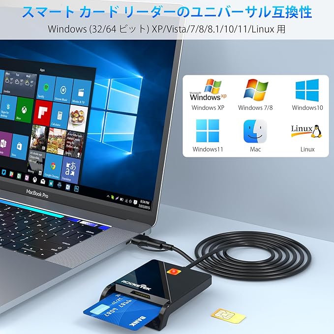 【スマート カード リーダー USB C 幅広いシステム互換性】チップ カード リーダーは、Windows 7 / 8 / 8.1 / 10 / 11、Linux、Mac OS 10.6 -10.10、Android など、ほぼすべての接触型チップ カードと PC および電話のオペレーティング システムで使用できます。デバイスに接続するとインジケーター ライトが赤に変わり、カードがカード スロットに挿入されるとインジケーター ライトが青に変わります。ヒント: カードをデバイスに接続するとインジケーター ライトが青に変わります。