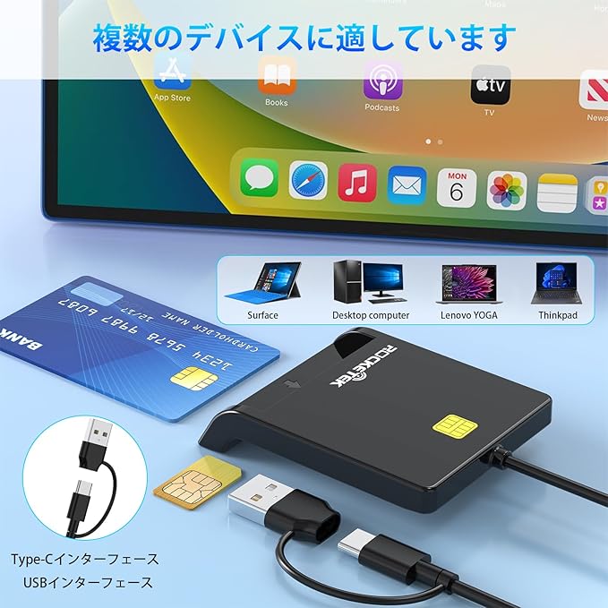 【2025安定高速版】2 in 2 ICカードリーダー 接触型 軽量 マイナンバー対応 マイナポイント申請 確定申告 納税システム e-Tax対応 CAC カード リーダー USB スマート リーダー、CAC リーダー DOD ミリタリー USB A/Type C ID カード リーダー USB ユニバーサル互換性 SIM カード リーダー Windows、Mac OS、Linux、Android