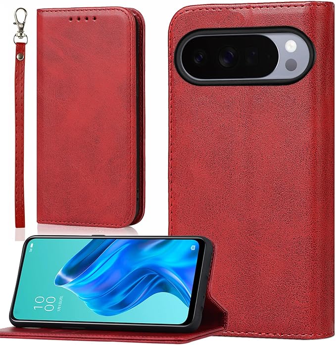 BonwFzin 適用 Google Pixel 10 Pro XL ケース 手帳型 ストラップ グーグル ピクセル 10 プロ XL カバー 手帳 Pixel10ProXL スマホケース PU レザー ストラップホール付き マグネット カード入れ スタンド 落ち着いた色 レトロ レッド