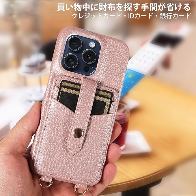 FOR pixel 9a ケース pixel9a ケース クレジットカード入れ ライチ紋様 背面収納 人気 おしゃれ カード収納 良い触り心地 耐衝撃 保護カバー 変色なし 豪華 ファッション 落ち着いた色 肩掛け 斜めかけ 縄掛けーローズゴールド