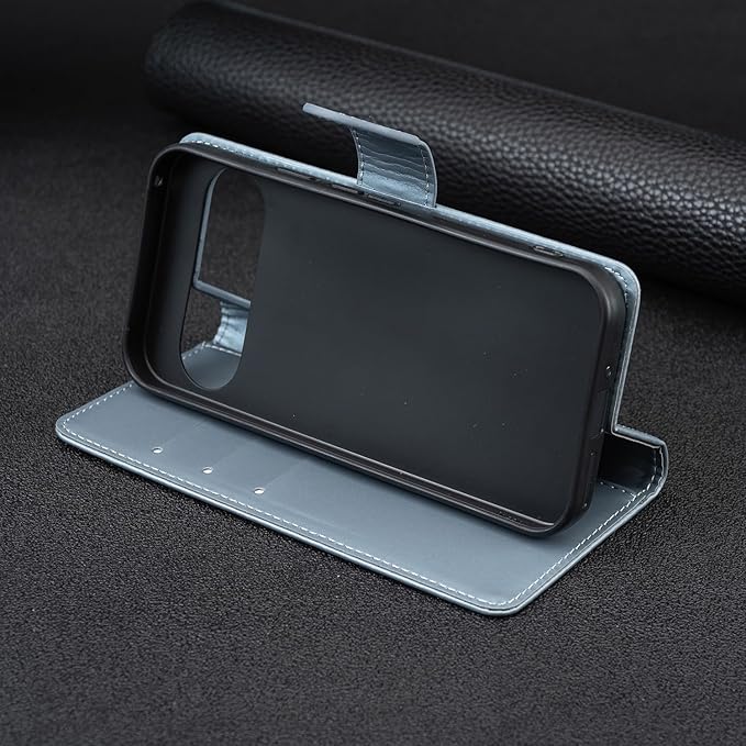 case for Google pixel 9/ 9 Pro 通用カバー グーグル ピクセル9/ 9 Pro ケース 手帳型 かわいい 猫 【MOMO1】マグネット開閉式 カードポケット付き 横開きスタンド 財布型 全面保護 (B2-ブルー, に適用するGoogle pixel 9/ 9 Pro通用)