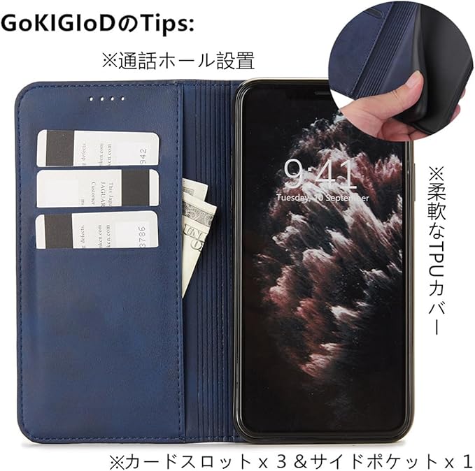 【素材】 表:レトロ感溢れる高品質の合成PUレザー、内:柔らかくて衝撃耐性高いTPUカバー(各機種対応の専門設計)。留め具なしので指への支障も無くなって、一見からするとシンプルなデザインで、汚れにくく落ち着いたレトロの材質を採用され、持ちやすく、使い勝手が良いのです。どんなシーンでも違和感なし、気楽に使えます。