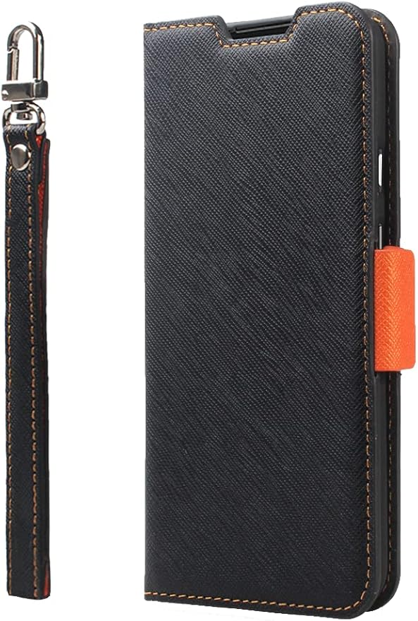 【Corallo】 Pixel 5a 5G 対応 手帳型 ケース ストラップ 付き スマホケース マグネット 式 ベルト 薄型 スリム スマホ 手帳型ケース カード 収納 スタンド 付 手帳 サフィアーノ レザー カバー 携帯ケース [ Google Pixel5a グーグル ピクセル 5a5G ピクセル5a 対応 ] NU ブラック オレンジ