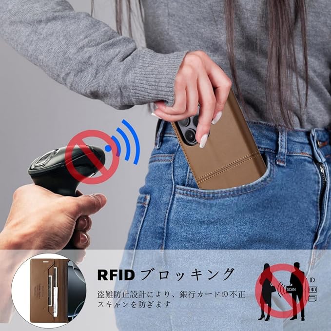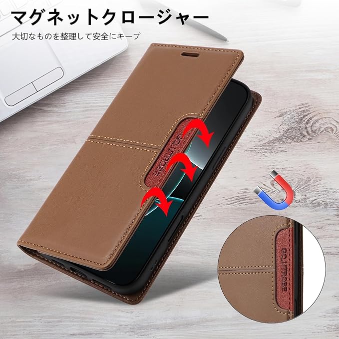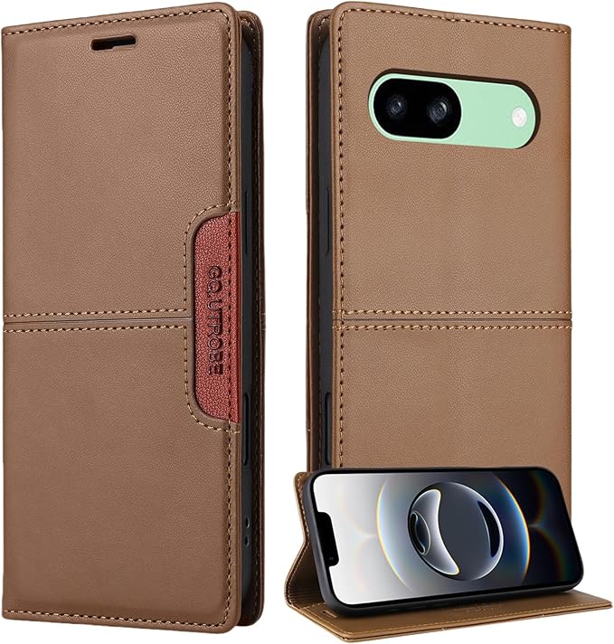 Google Pixel 8a 用 手帳型 スマホケース 財布型 [RFIDブロッキング] カード収納付き 高級PUレザー 耐衝撃 マグネット式 スタンド機能 全面保護 (ブラウン, Google Pixel 8A)