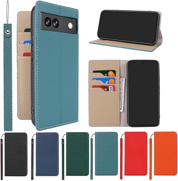 for Pixel 8A ケース 本革 牛革 for google pixel8A ケース 手帳型 Pixel 8A カバー Case 手帳 本革 柔らかい 本皮 スプラットホール付き スプラット同梱 内蔵マグネット - ライトブルー