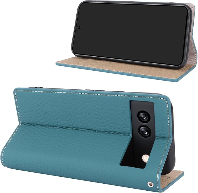 Eastwave for Pixel 8A ケース 本革 牛革 for google pixel8A ケース 手帳型 Pixel 8A カバー Case 手帳 本革 柔らかい 本皮 スプラットホール付き スプラット同梱 内蔵マグネット - ライトブルー