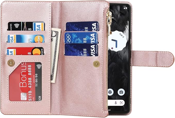 Eastwave for Google Pixel 7A ケース for pixel 7a google 縄掛けケース Pixle7A 手帳型 財布型 ICカード コインポケット ストラップ付き カード 収納 小銭入れ ファスナーポケット付き PUレザー 6色ピンク