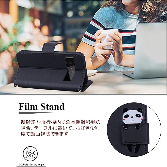 Google Pixel 6a ケース 手帳型 Pixel 6a 手帳型ケース Pixel 6a ケース ピクセル 6a 手帳ケース スマホケース Pixel6aケース 携帯カバー グーグルピクセル6a手帳型ケース 携帯ケース pixel 6a case カバー 肌触り良いレザー 柔らかいTPUケース カード収納 財布型 ベルトマグネット スタンド機能 パンダ かわいい 動物柄 薄型 防水 ノート型 人気 おしゃれ 男女兼用 黒 (Google Pixel 6a 6.1 inch対応) ブラック