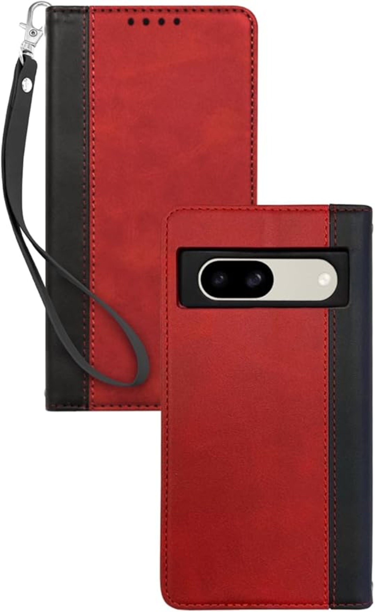 叶kanae カナエ Google Pixel 8a ケース カバー 手帳型 本革調 レザーケース ボルドーレッド ブラック 1個入り