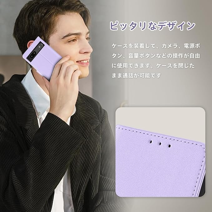 コンパチブル Google Pixel 8a ケース 手帳型 グーグル ピクセル8A 用 高級PU レザーケース カバー スマホケース 財布型 カード収納 マグネット カメラ保護 横置きスタンド機能 ストラップ付き 耐摩擦 耐衝撃 全面保護(Google Pixel 8a 対応 パープル)