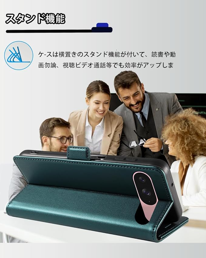 【Junzc】グーグルピクセル9 ケース Google Pixel 9 Pro ケース 手帳型 カードポケット付き 用 携帯カバー カード収納 スマホケース 高級レザー 耐衝撃 全面保護 スタンド機能 ストラップホール付き マグネット式(ターコイズ)