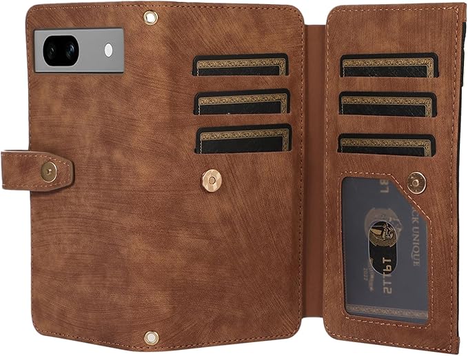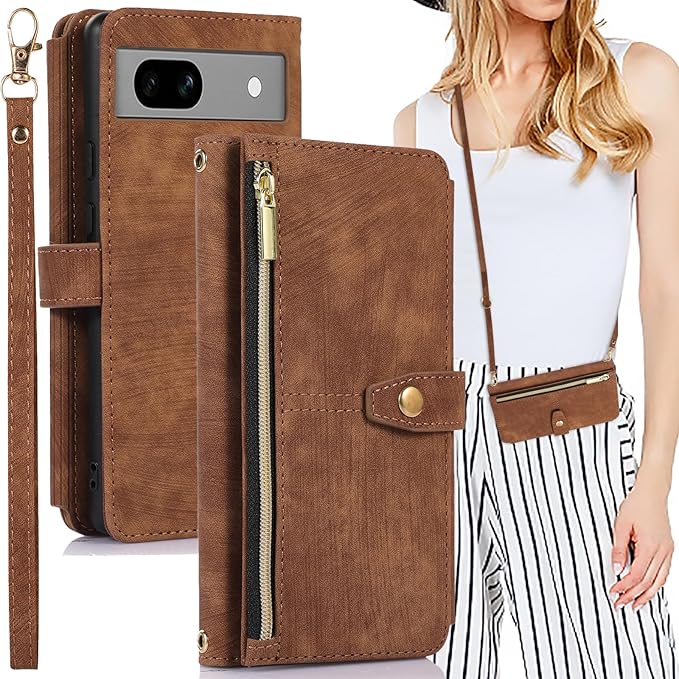 Google Pixel 7Aケース 手帳型 グーグル ピクセル7a ケース 手帳型 つや消し肌感レザー Pixel 7A携帯カバー マグネット開閉 Pixel 7A カバー 多機能 収納 財布カバー ピクセル 7a ケース カード入れ サイドジッパー 横置きスタンド機能 ケース 縄掛け/肩掛け 保護カバー 全面保護防塵耐衝撃横開き 滑り防止(Google Pixel 7a, ブラウン)