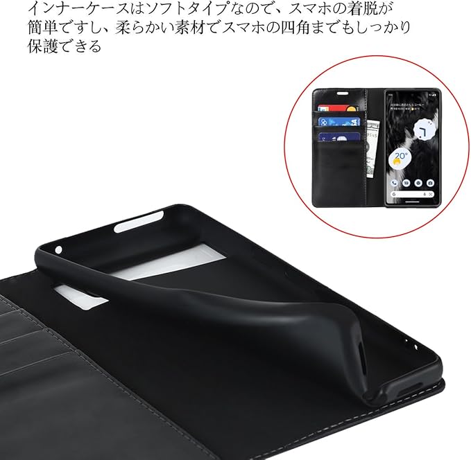 Google 適用 pixel 7A ケース 手帳型 【 マグネット無し 】 耐衝撃 カードケース pixel7A ケース 手帳型 au SIMフリー softbank ソフトバンク docomo ドコモ 全対応 手帳ケース ピクセル 7A カバー グーグル ピクセル7A カバー pixel7A スマホケース 手帳型 カバー pixel7Aケース 財布型 適用 case 【iCoverCase】 マグネットなし スタンド機能 光沢加工 牛革 レザー 財布型 カード入れ ブラック