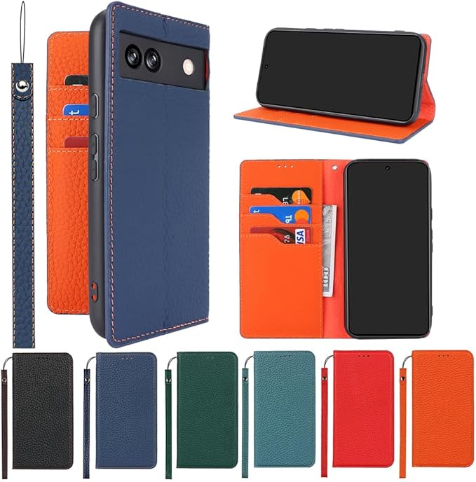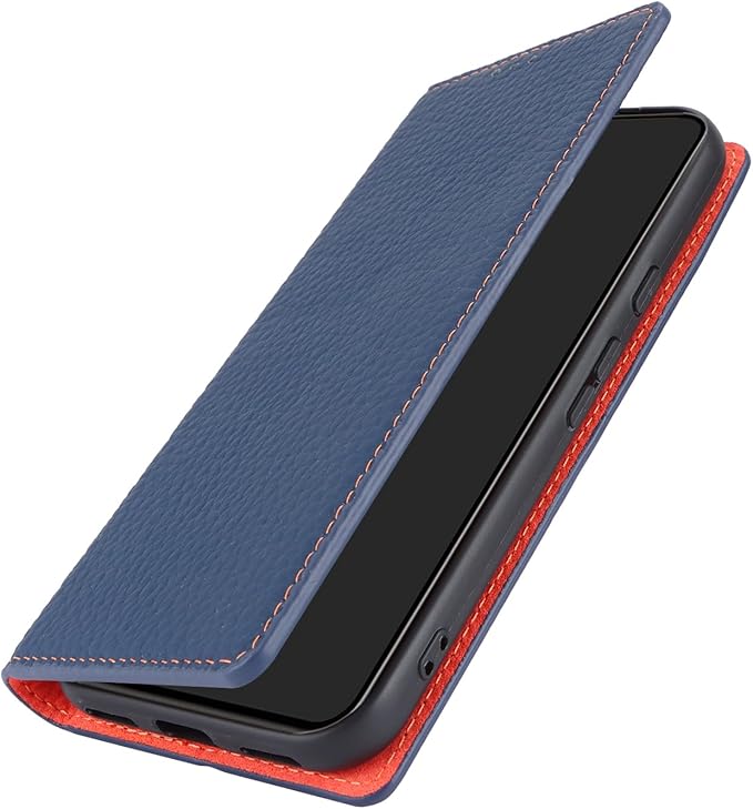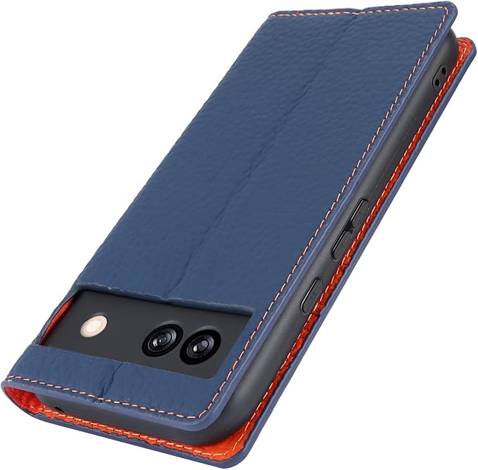 for Pixel 8A ケース 本革 牛革 for google pixel8A ケース 手帳型 Pixel 8A カバー Case 手帳 本革 柔らかい 本皮 スプラットホール付き スプラット同梱 内蔵マグネット - ネイビー