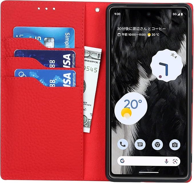 Eastwave for Google Pixel 7A ケース 本革 牛革 for google pixel7 A ケース for pixel7A 手帳型 カバー Case カバー 手帳 本革 柔らかい 本皮 スプラットホール付き スプラット同梱 内蔵マグネット-レッド