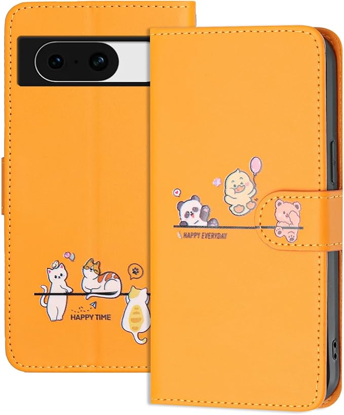 Google Pixel 8a ケース 手帳型 可愛くて子供っぽいセンス ぐーくるぴくせる8a ケース Pixel 8aケース ピクセル8a 手帳型ケース 活発な動物のイメージがまた違った新鮮さをもたらします ピクセル8a ケース Google Pixel 8a スマホケース 1台で多機能 携帯電話ホルダー 利便性と落下防止保護 手帳型Pixel8aケース オレンジ