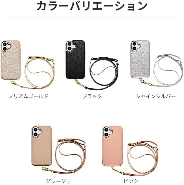 ✅【多彩なカラーバリエーション】落ち着いた雰囲気のブラック、グレージュ、ピンク、ミント、パールブルー。そして背面がキラキラと輝きゴージャスな印象を与えるプリズムゴールド、シャインシルバーの 7色展開。その日の気分やシーンに合わせたカラーで使い分けることも可能です。またショルダーストラップの側面は本体と同じカラーがついてきます。※商品画像はサンプルのため、実物と仕様が異なります。