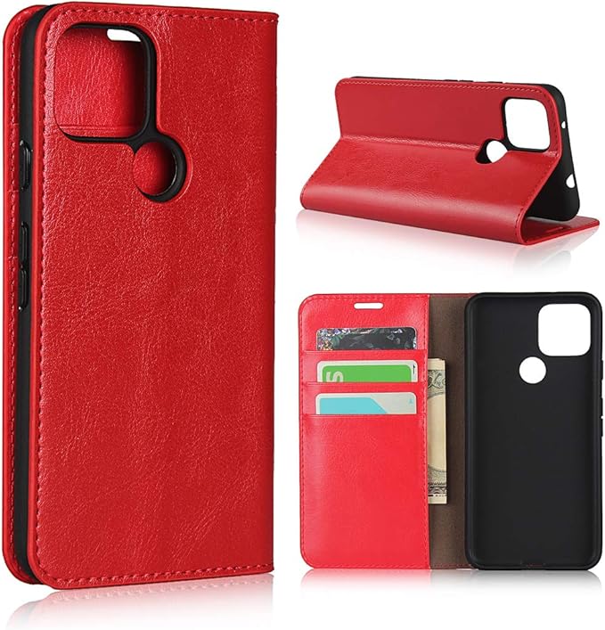 Eastwave for Google Pixel 4A 5G ケース for pixel4a 5g カバー for google 4a 5g 財布型カバー 収納ポケット 牛革製品 ポケット収納付き 横置きスタンド機能 落ち着くデザイン オシャレ4色 レッド