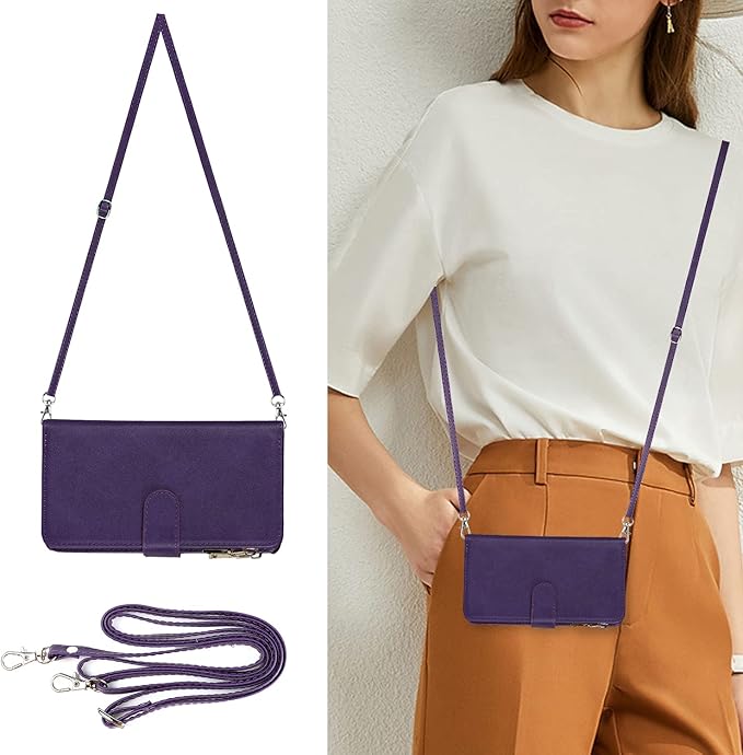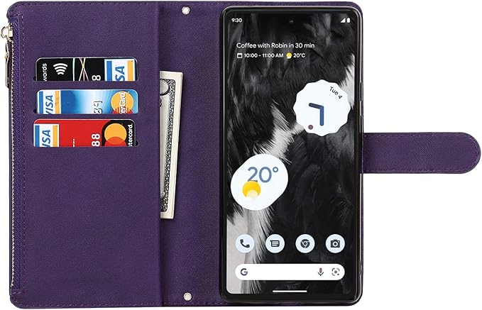 Eastwave for Google Pixel 7A ケース for pixel 7a google 縄掛けケース Pixle7A 手帳型 財布型 ICカード コインポケット ストラップ付き カード 収納 小銭入れ ファスナーポケット付き PUレザー 6色パープル