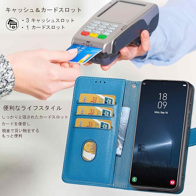 【カード収納】内側には3つのカードスロットと1つのキャッシュポケットがあります、名刺や定期券の収納に優れォン ケースです。普段の生活に便利をもたらします。